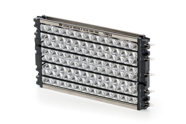 The HRKK Delta M 24/24 230 V is a powerful PTC air heater with patented delta-shaped fins, engineered for homogeneous heating of airflows in ventilation and HVAC systems, industrial automation, and special vehicle cabins. Operating at 230 V (AC or DC), this medium-sized model is ideal for efficiently heating large volumes of air with minimal pressure drop.